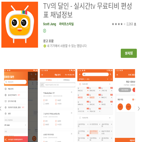 TV의 달인 앱을 다운로드·실행한 후 서비스 제공회사를 선택하는 창이 가장 먼저 보이게 됩니다. 서비스 제공 회사란 방송사의 채널을 제공하는 브랜드로 볼 수 있으며 본인이 가장 익숙한 선택지를 고르는 것이 좋습니다. 간단한 언어설정과 화면설정을 마치면 실시간 방송 스케줄이 표시된 전체 채널의 방송 편성표를 열람할 수 있습니다. 이 중 본인이 시청하고자 하는 방송을 클릭했을 때 알림설정, 프로그램 정보와 함께 '실시간 TV보기' 버튼이 보이는데, 이것을 누르면 프로그램을 제공하는 사이트에 자동으로 연결됩니다. 알림 설정은 본인이 즐겨보는 프로그램의 알람을 직접 선택한 시간에 맞추어 1회성의, 혹은 정기적인 알람을 주는 서비스입니다.