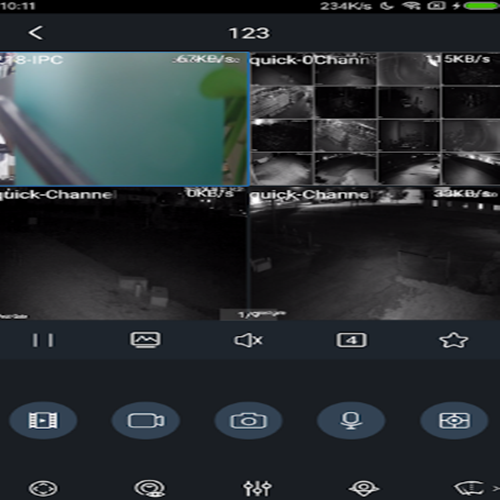 앱을 실행하자마자 나오는 몇 가지 알람들을 치우면 기기들을 연결할 수 있는 화면이 등장합니다. 그 중에 CCTV처럼 생긴 탭을 누르면 사분할 박스가 등장합니다. 아직 CCTV를 스마트 폰에 연결하지 않았기 때문에 당연히 빈 박스입니다. 화면의 오른쪽 상단에 연결 버튼을 클릭하고 플러스(+) 버튼을 눌러 기기를 연결하면 화면의 빈 박스였던 부분에 CCTV가 연결된 것을 볼 수 있습니다. 등록 모드는 DAHUA DDNS로 연결하시고 나머지는 비밀번호, 사용할 이름 등을 기재하면 됩니다.